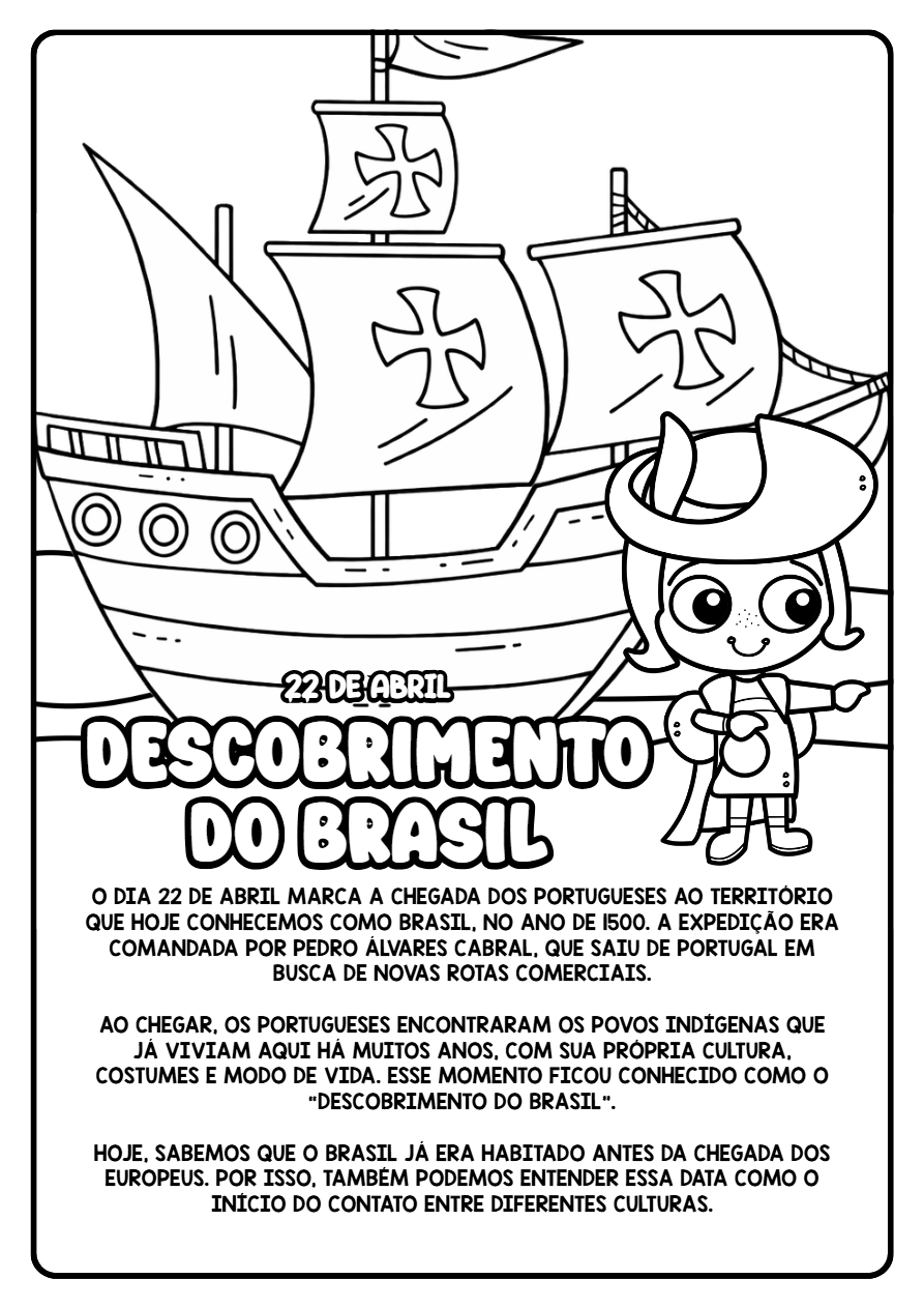 Procurando atividades sobre o Descobrimento do Brasil que unam teoria e ludicidade? Este kit pedagógico em PDF foi desenvolvido especialmente para facilitar o planejamento de professores da Educação Infantil e Ensino Fundamental (anos iniciais).
