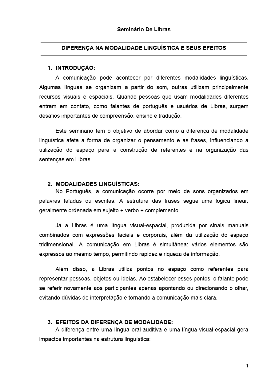 Material completo para aula de Libras abordando as diferenças entre a língua portuguesa (oral-auditiva) e a Libras (visual-espacial).