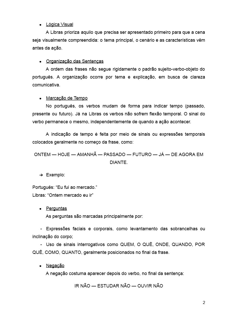 - Estrutura das frases em Libras
