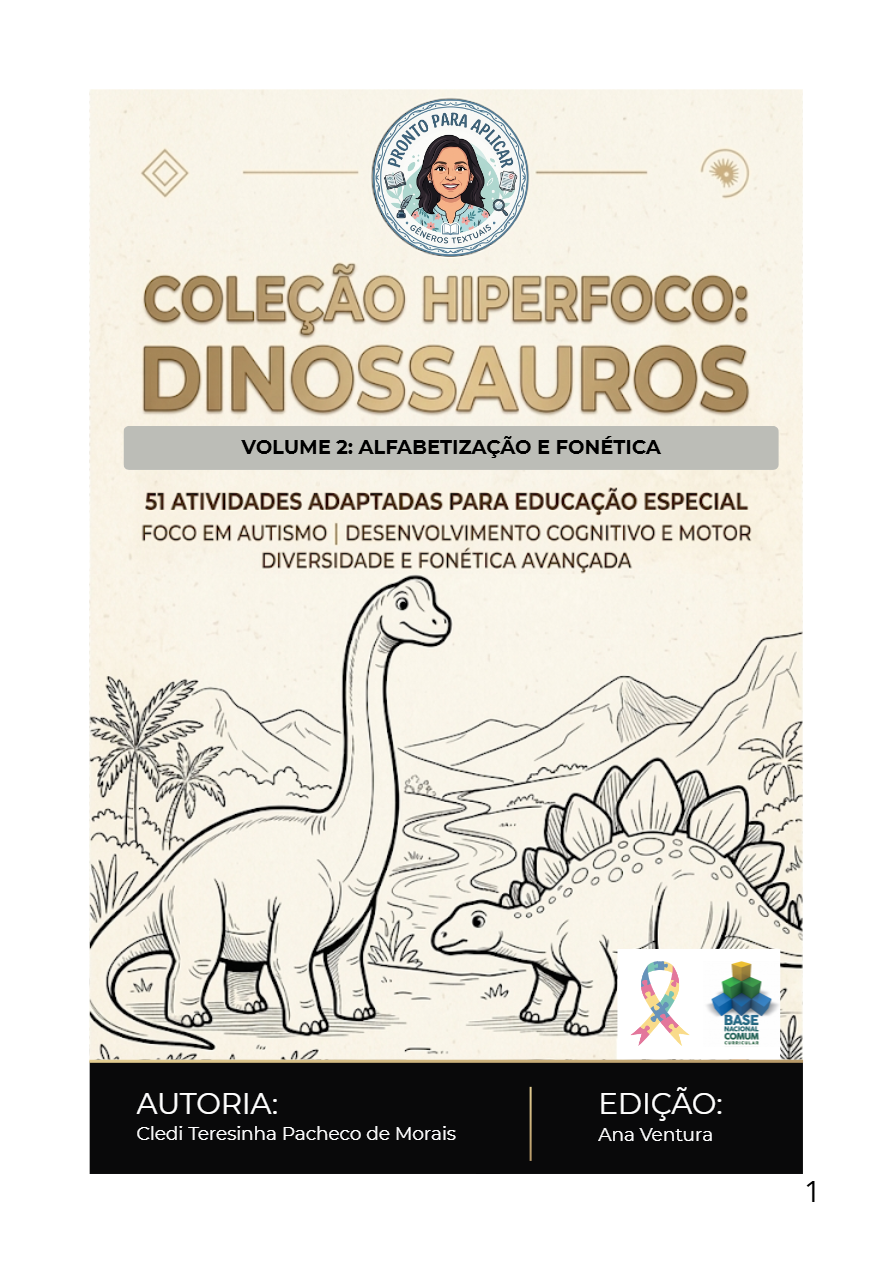 Alfabetize com dinossauros! 51 atividades em PDF para imprimir, alinhadas à BNCC e com visual limpo para foco total.
