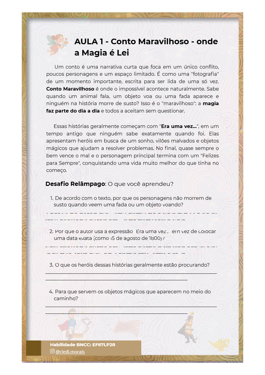 - Oficina de Escrita: Roteiro prático para o aluno criar sua própria história na prática.