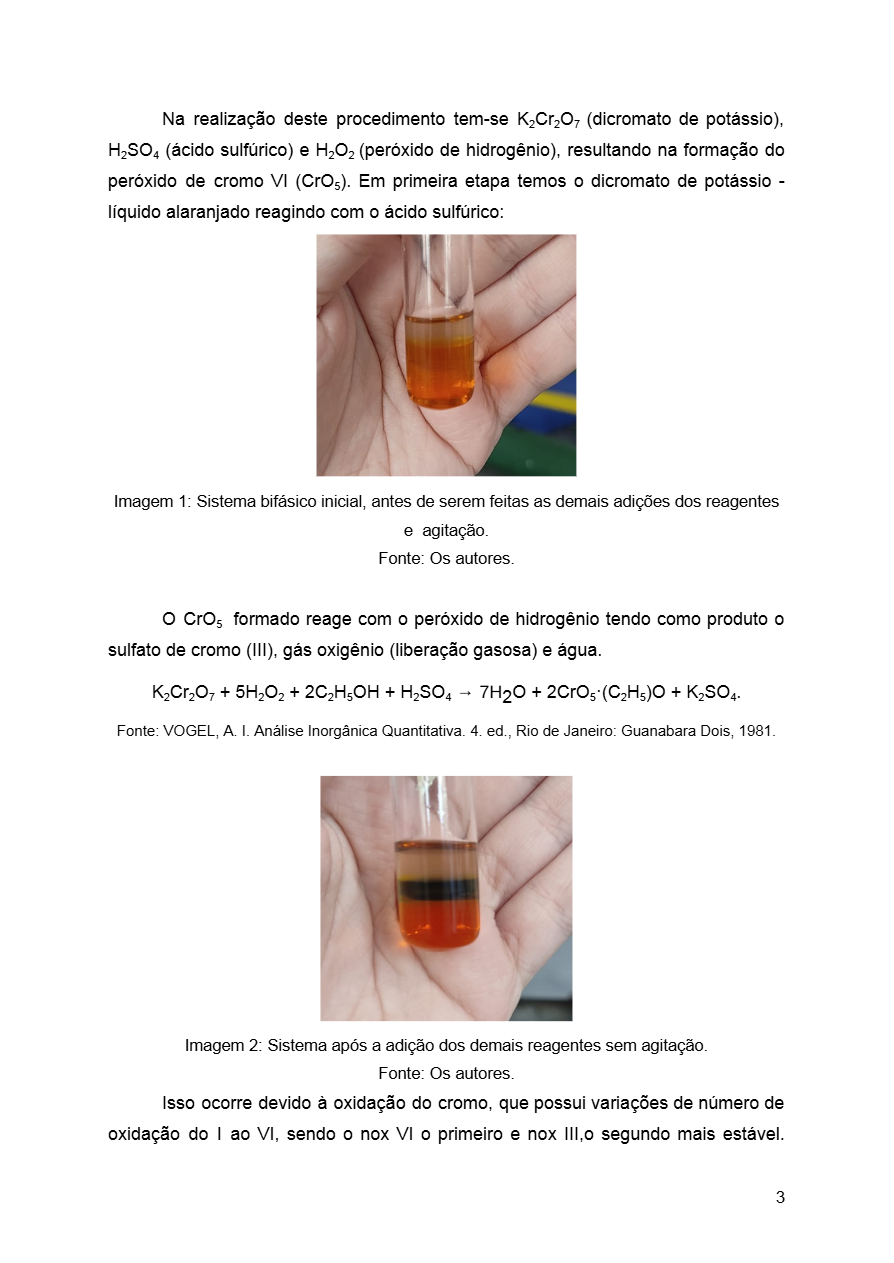 O documento apresenta um relatório detalhado com descrição dos procedimentos experimentais, análise dos resultados e explicação das reações químicas envolvidas, podendo ser utilizado tanto por estudantes quanto por professores como material de apoio didático.