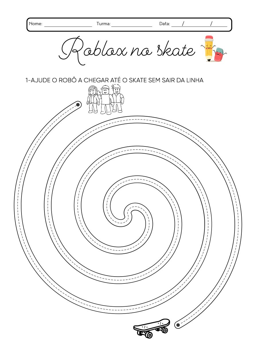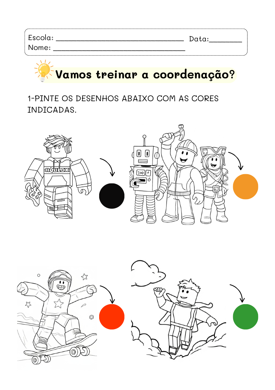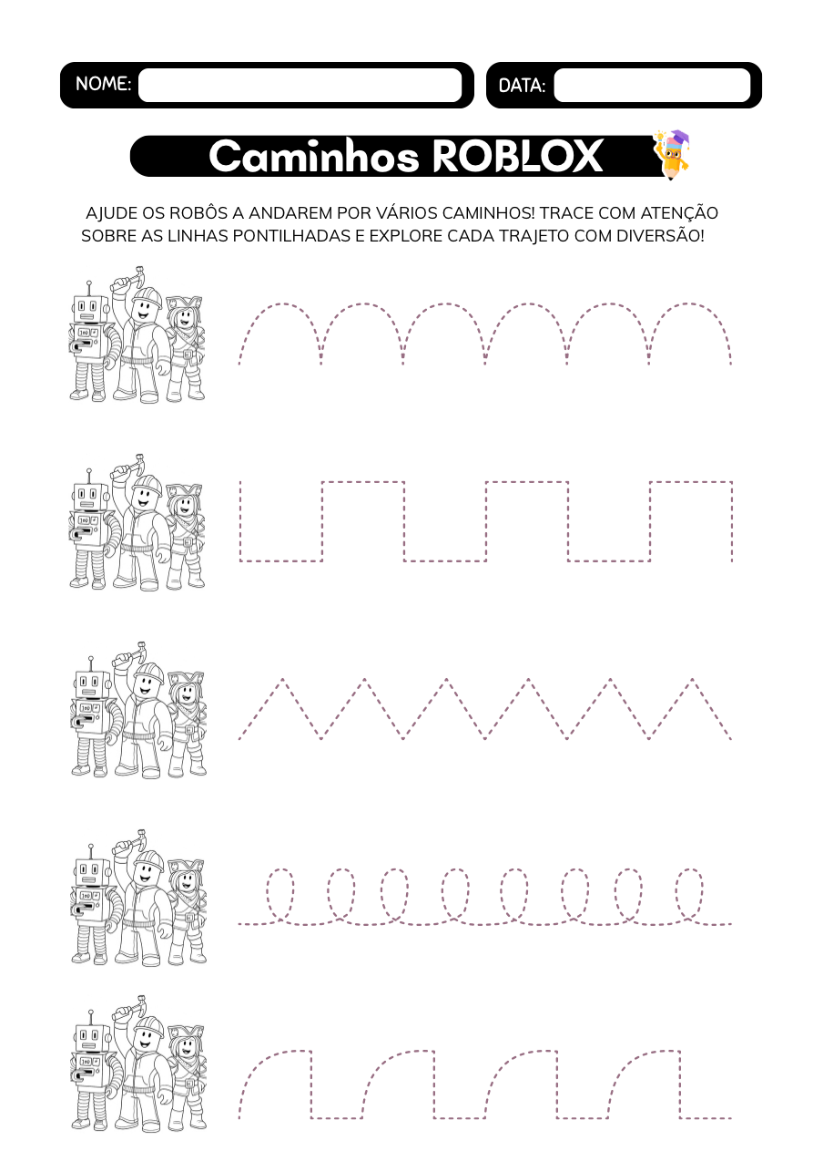 KIT COM 7 ATIVIDADES DE COORDENAÇÃO MOTORA COM TEMA ROBLOX PARA ALUNOS DA EDUCAÇÃO INFANTIL