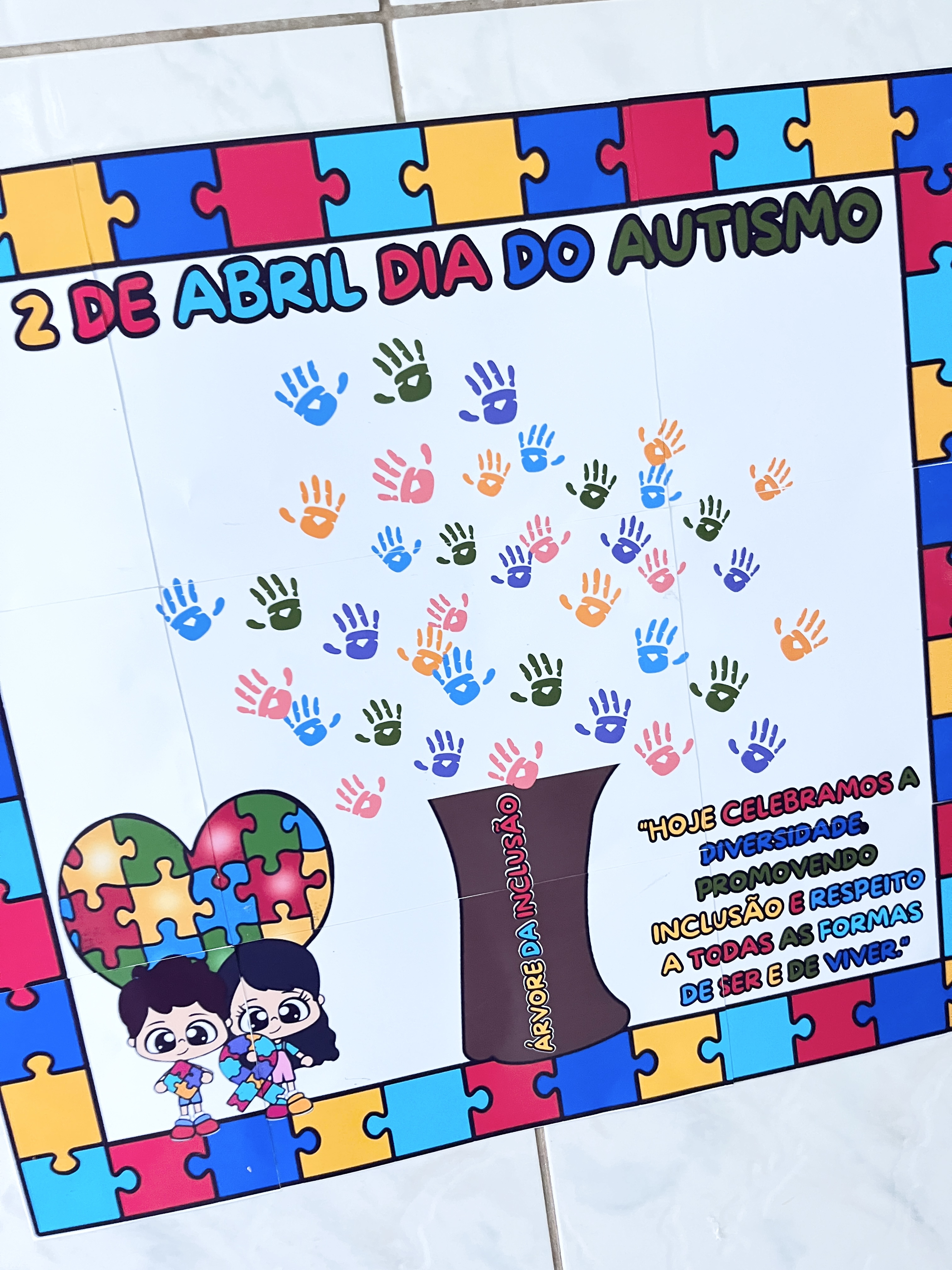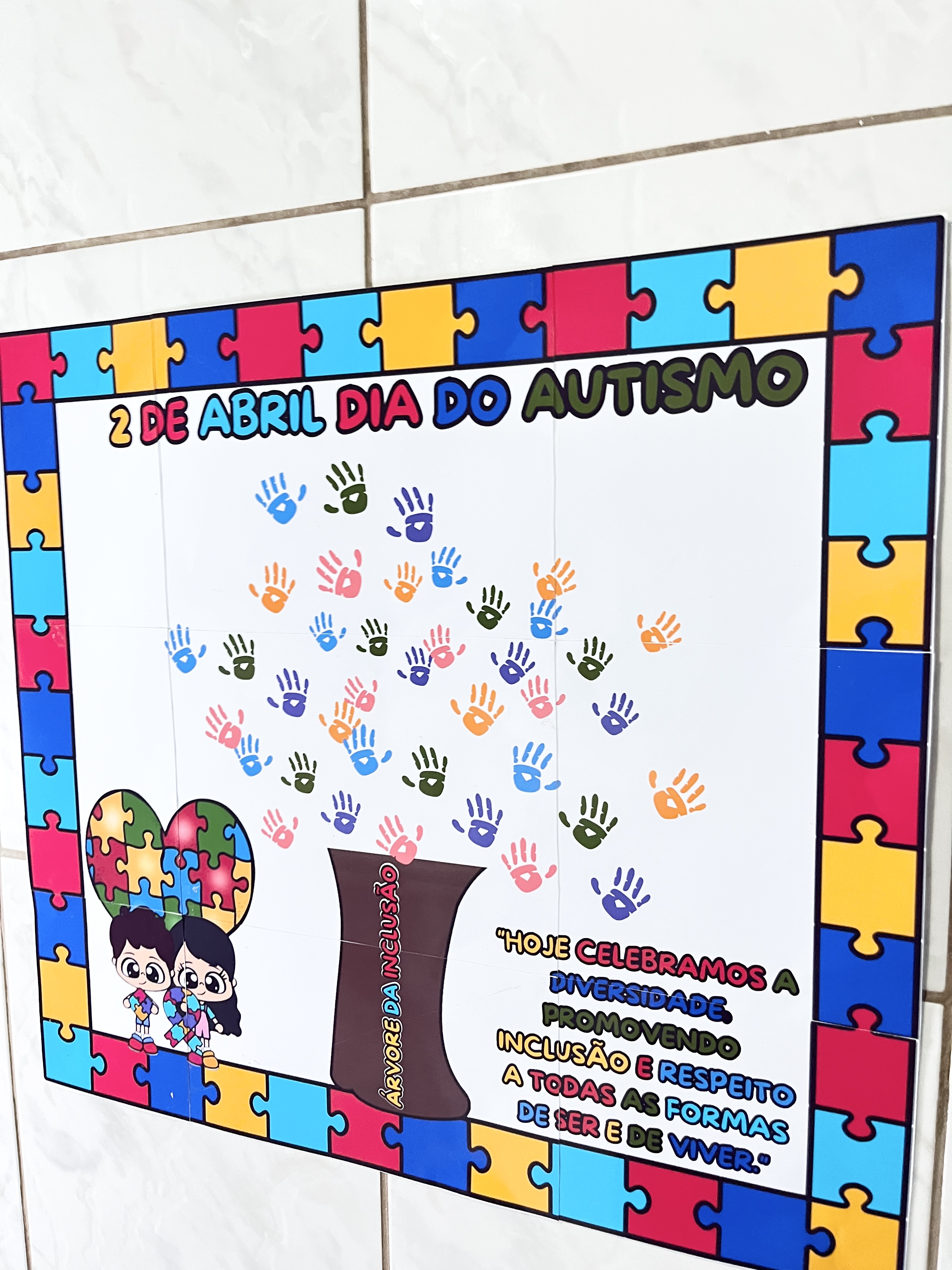 Perfeito para decorar a sala de aula ou os espaços da escola no Dia Mundial da Conscientização do Autismo (2 de abril), o painel também se torna um momento de diálogo e reflexão sobre empatia, respeito e convivência.