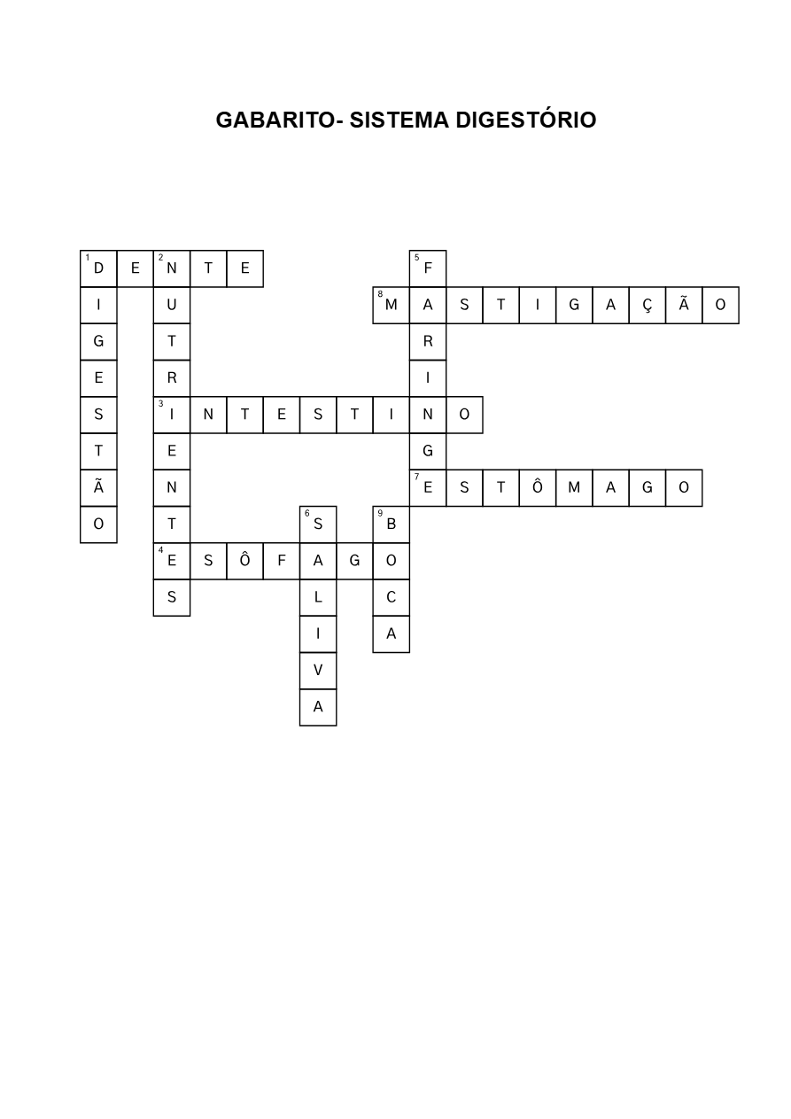- Cruzadinha com conceitos do sistema digestório