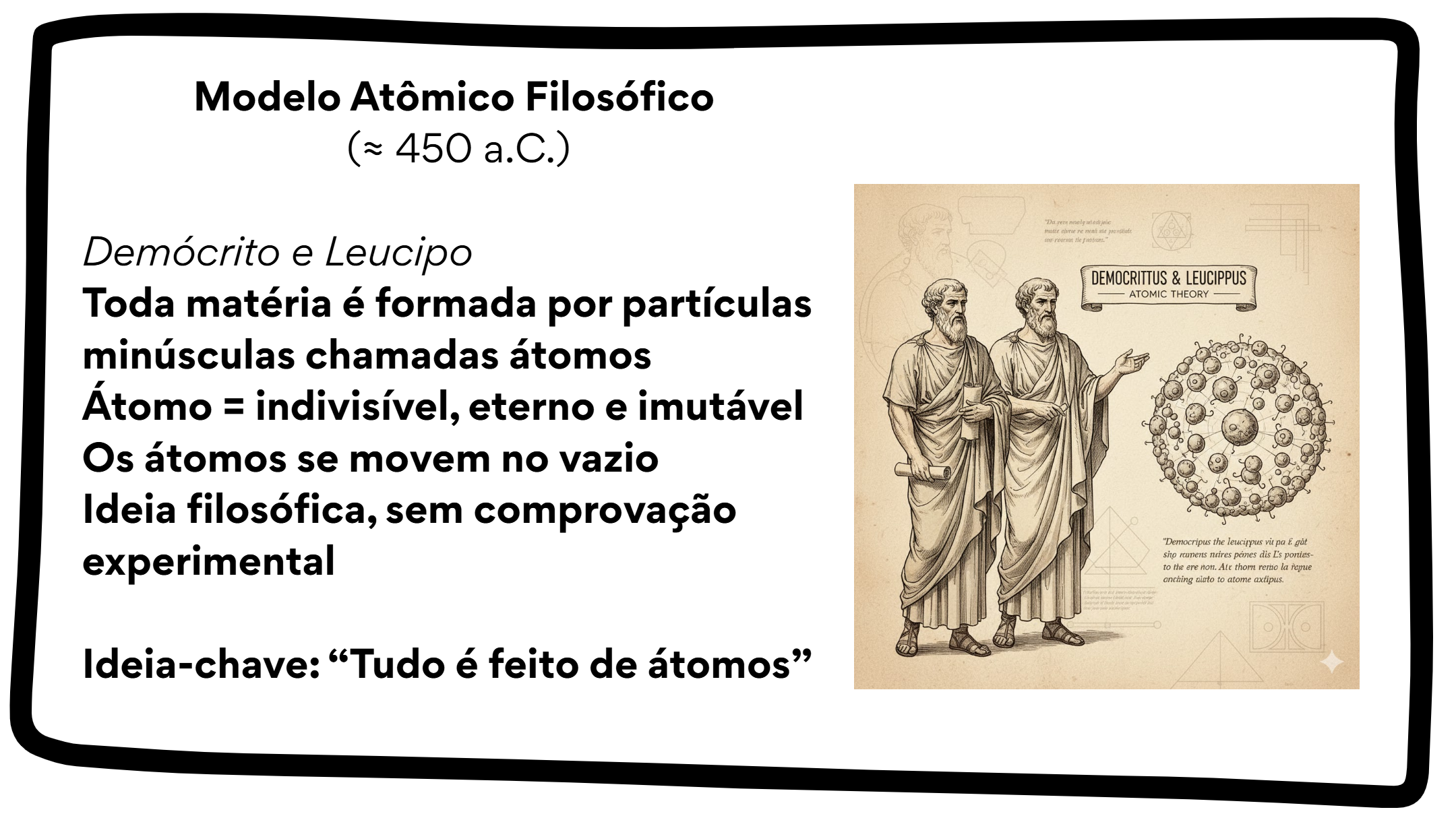 Este material apresenta uma linha do tempo visual e explicativa sobre a evolução dos modelos atômicos, partindo da Grécia Antiga até a mecânica quântica moderna.