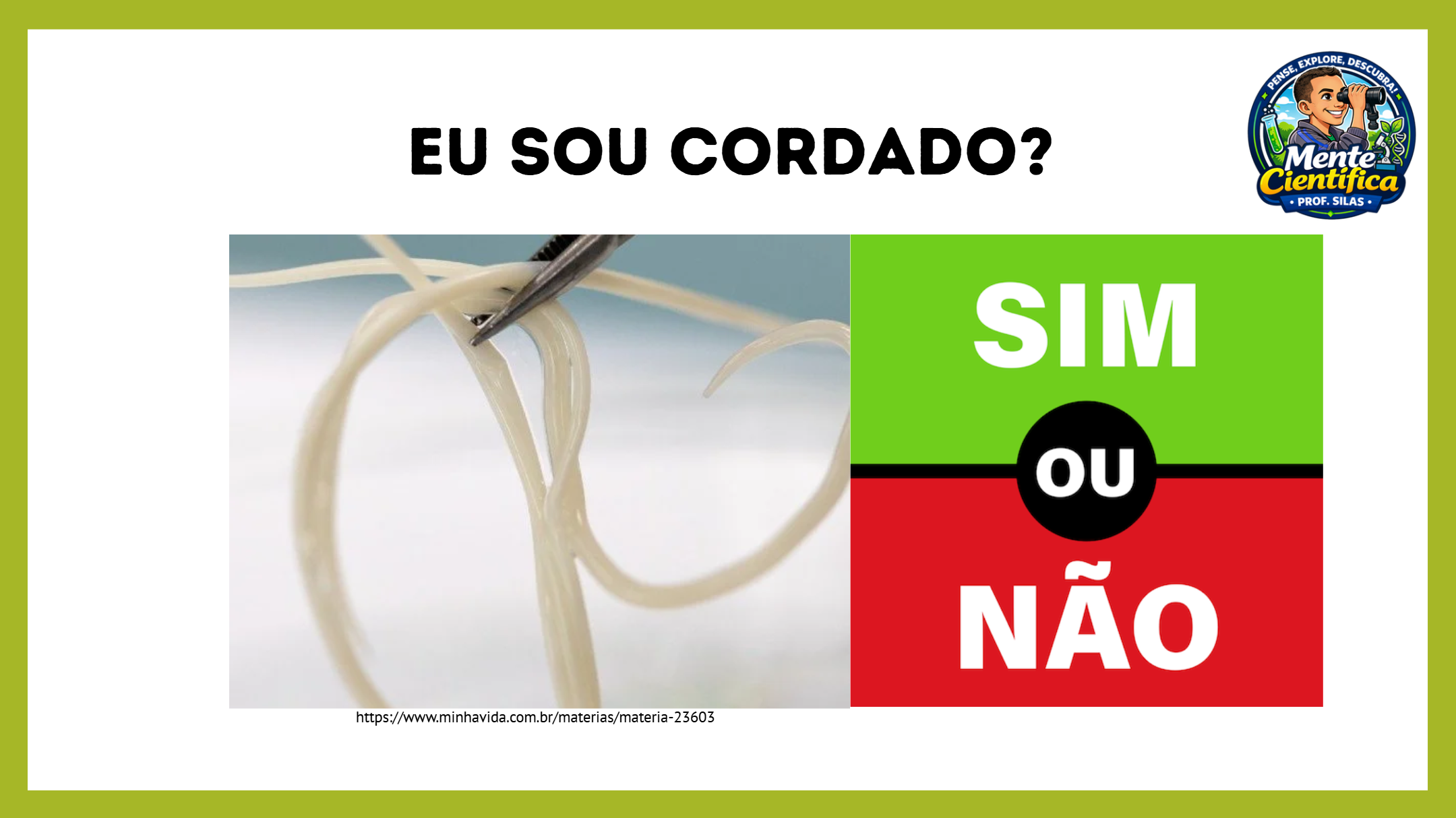 Com uma abordagem visual e interativa, o material inicia com situações investigativas (como “Eu sou cordado?”), estimulando a participação dos alunos desde o início da aula. Ao longo dos slides, são trabalhados os principais conceitos sobre os cordados e os cinco grupos de vertebrados: peixes, anfíbios, répteis, aves e mamíferos.