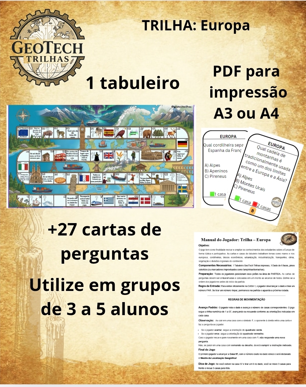 Trilha da Europa - Com cartas de perguntas